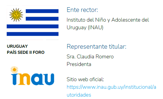 Instituto Interamericano del Niño, la Niña y Adolescentes (IIN) Organismo Especializado de la OEA en materia de niñez y adolescencia. Representante: María Julia Garcete Yegros Directora general Sitio web oficial: https://iin.oea.org/index.html